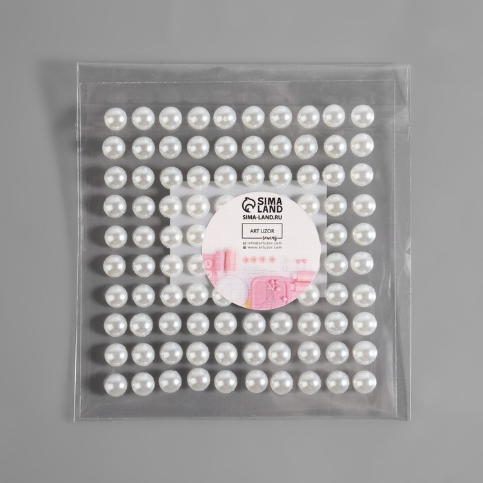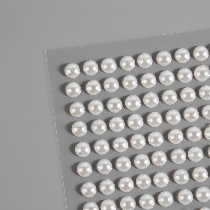 Жемчуг самоклеящийся, d = 6 мм, 100 шт на листе, цвет белый