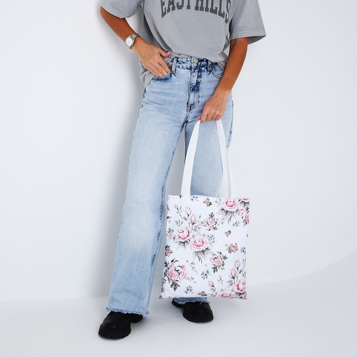 Сумка шопер «Розы», 35х0.5х40 см, отд без молнии, без подклада, белая