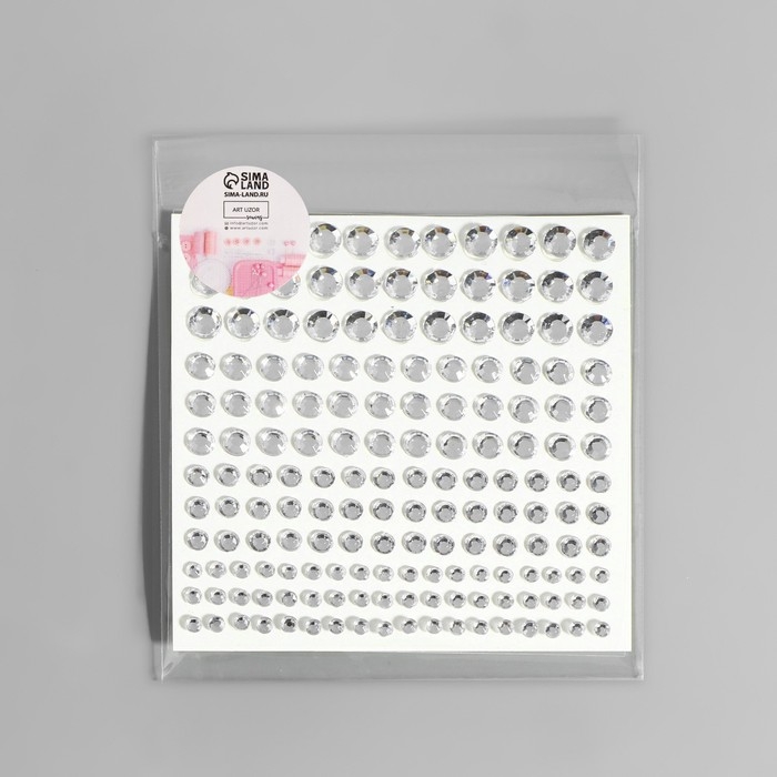 Стразы самоклеящиеся, d = 3/4/5/6 мм, 165 шт на листе, цвет серебряный