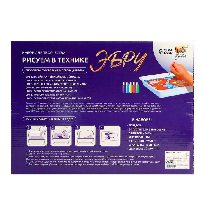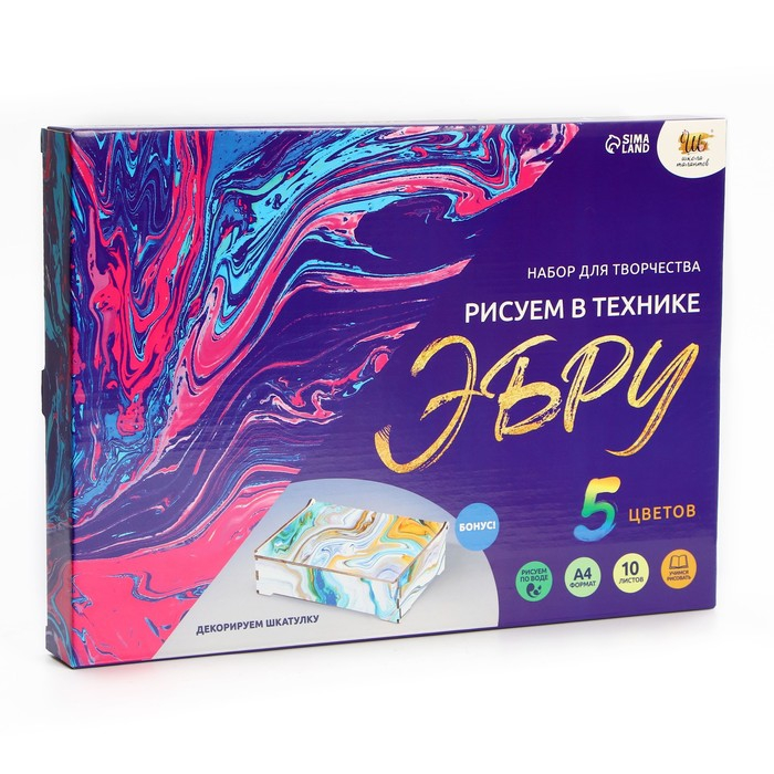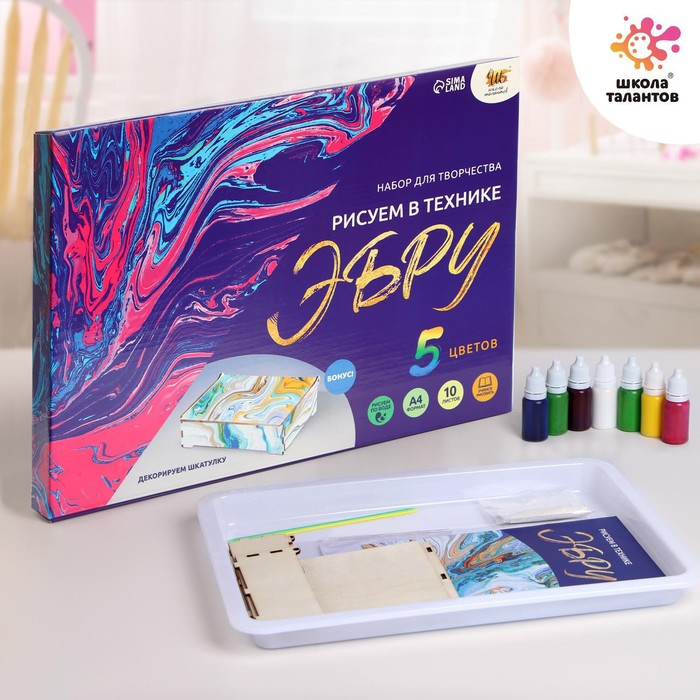Набор для творчества «Рисуем в технике Эбру» , формат А4 + шкатулка из дерева