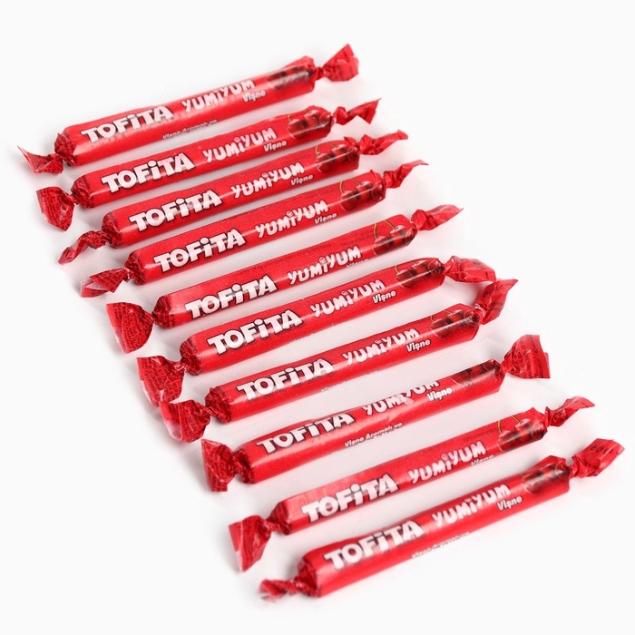 Состав: сахар, сироп глюкозный, масло растительное (пальмовое), регулятор кислотности (лимонная кислота), желатин говяжий, концентрат сока вишни (0,4 %),эмульгаторы (Е471, лецитин подсолнечный), ароматизатор искусственный (вишня), идентичный натуральному, краситель (красный свекольный, Е160а).