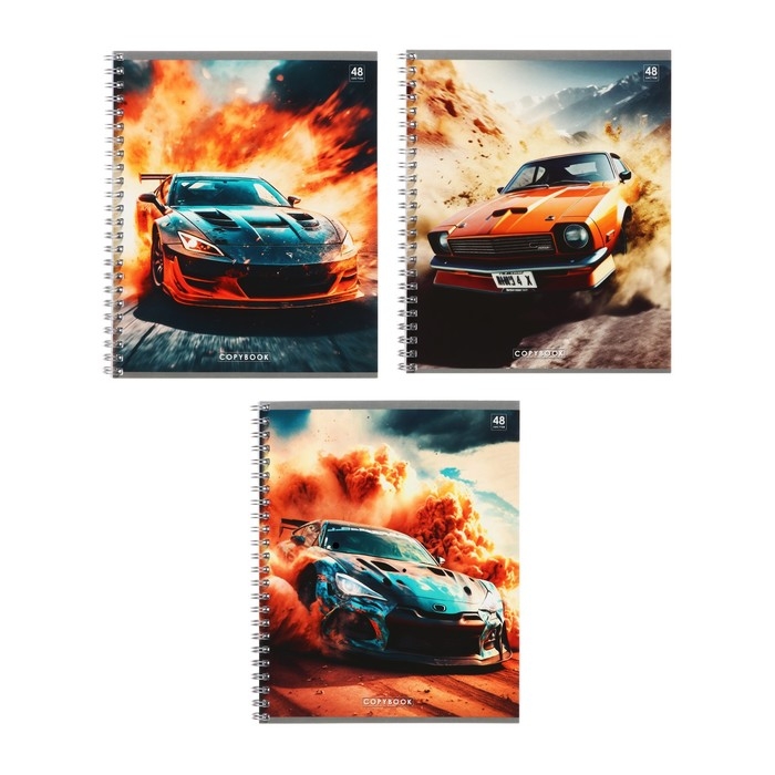 Тетрадь 48 листов в клетку на гребне Calligrata "Авто", обложка мелованный картон, ВД-лак, блок офсет, белизна 95%, МИКС