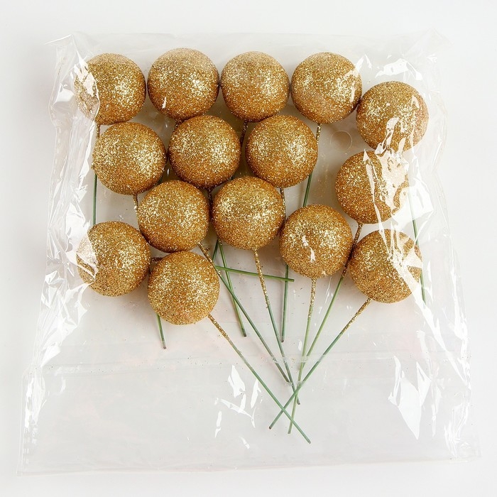 Фигурка для поделок и декора на проволоке «Шар», набор 15 шт., размер 1 шт. — 3 × 9 см, цвет золотой