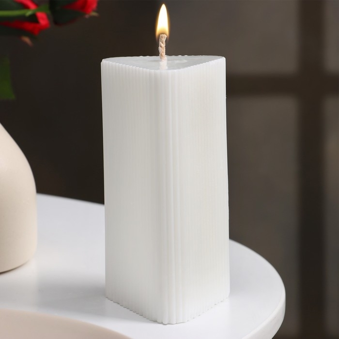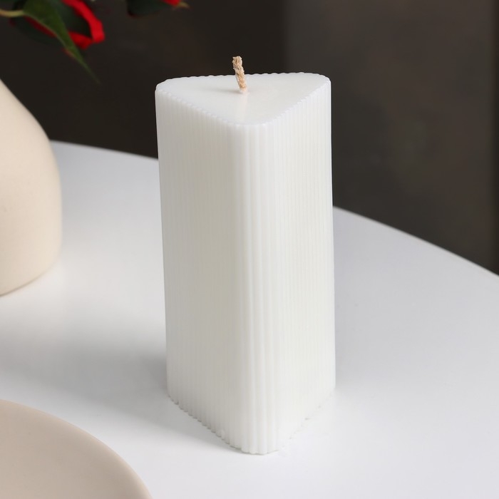 Свеча декоративная "Треугольник с гранями",6х12 см, белая, 12 ч