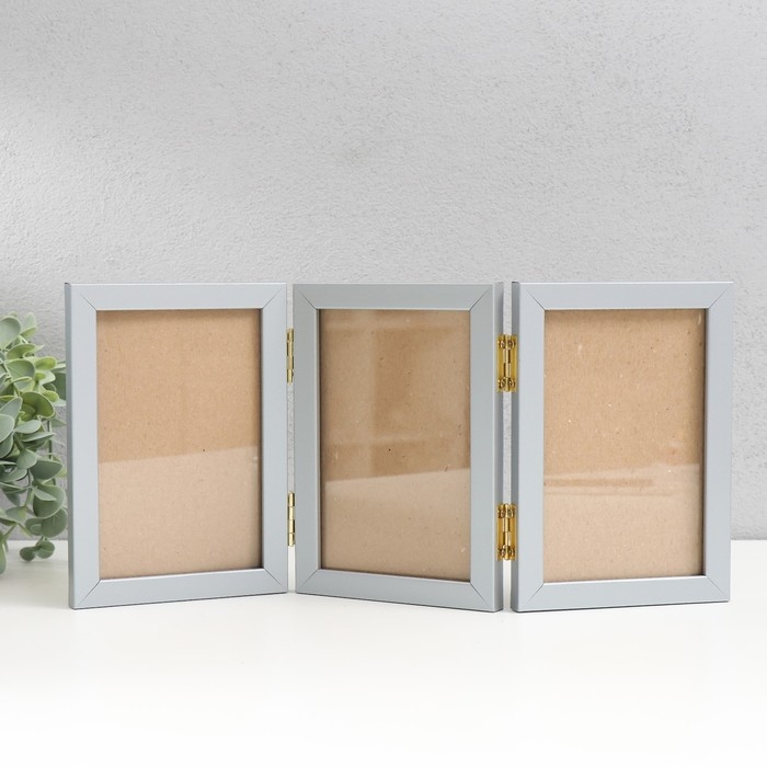 Фоторамка пластик 10х15 см, тройная вертикальная, серебро