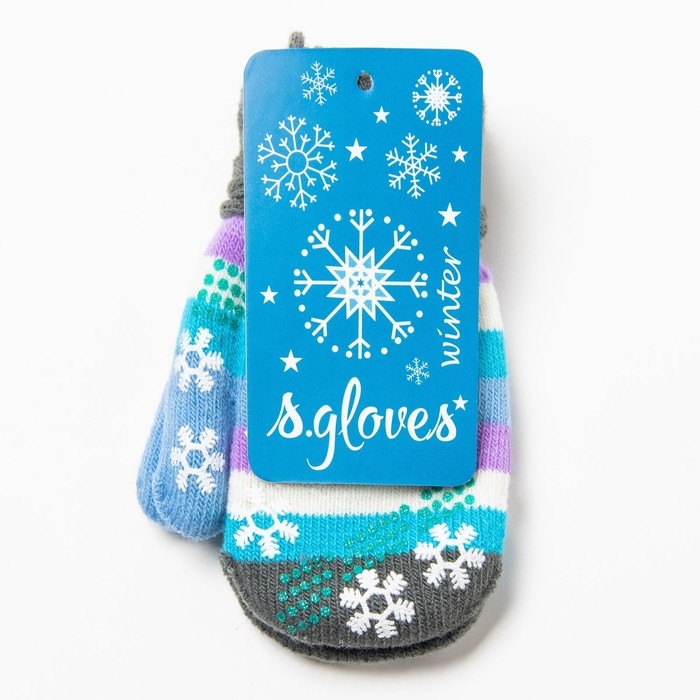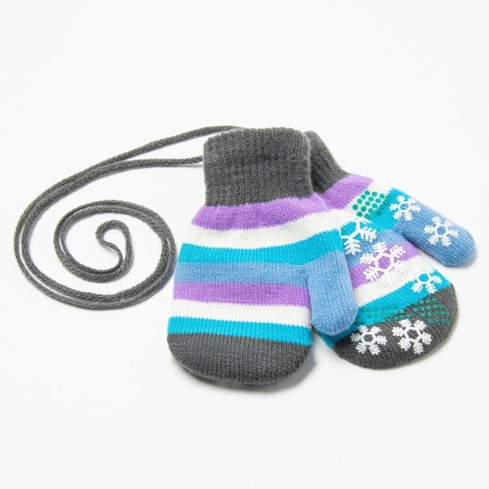 Варежки детские, цвет серый/полосочки, размер 14,5х6,7