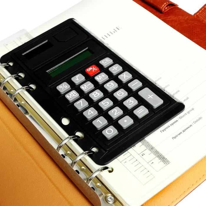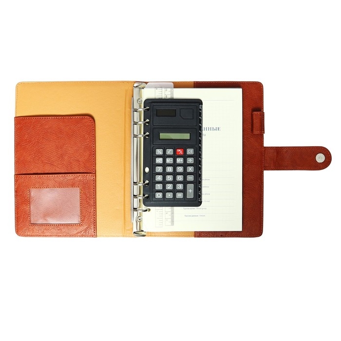 Органайзер на кольцах, обложка ПВХ, А5, 140 листов в клетку, на кнопке, с калькулятором, МИКС