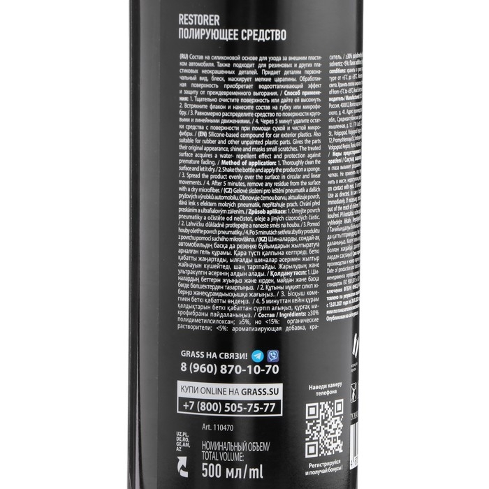 Полирующее средство восстановитель пластика Grass Restorer, 500 мл