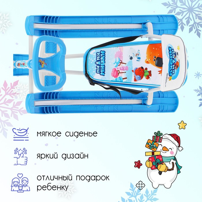 Снегокат «Тимка спорт 4-1 ми-ми-мишки», ТС4-1/ММ1, со спинкой и ремнём безопасности, цвет голубой/белый