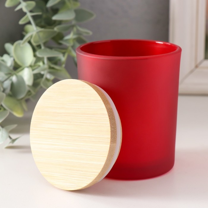 Банка для свечей стекло с крышкой "Красная полуматовая" 220 мл 7х7х8,4 см
