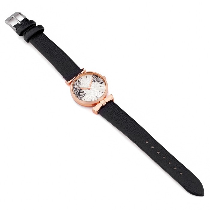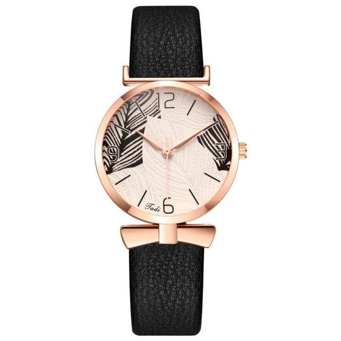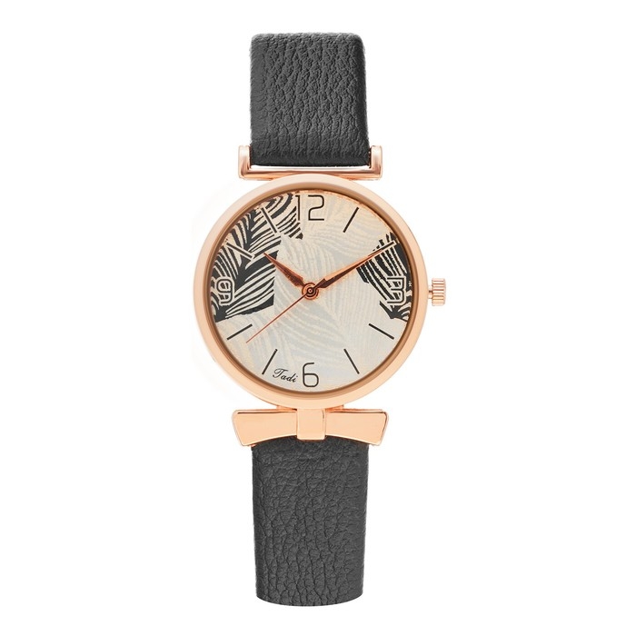 Часы наручные кварцевые женские "Листья", d-3.3 см, черный ремешок