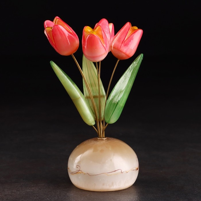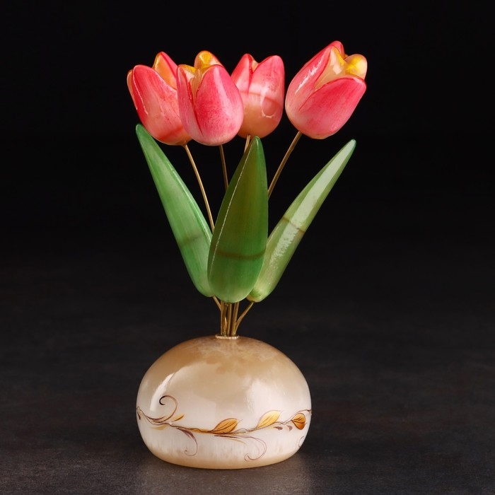 Сувенир "Ваза Тюльпан", 5 цветков, селенит, малая, селенит