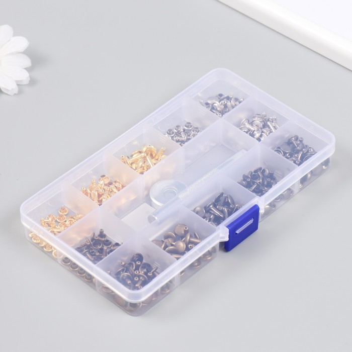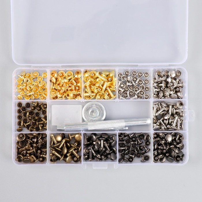 Набор заклёпок 180 шт 12 видов (8х12 мм; 8х8 мм; 6х6 мм) 17,2х9,5х2,3 см