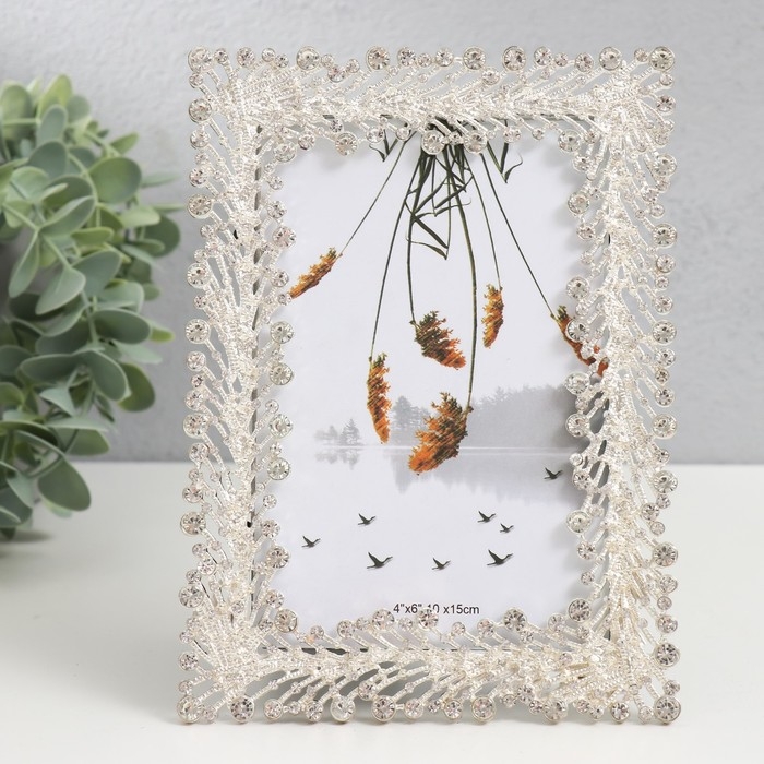 Фоторамка металл, стекло 10х15 см "Морские водоросли" золото стразы 13,3х17,5 см