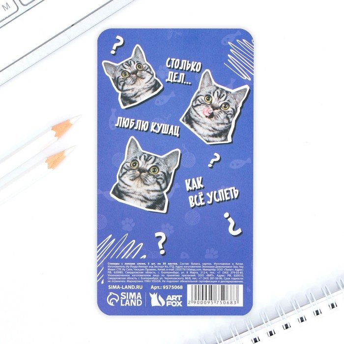Стикеры-закладки, на подложке «Кто-то сказал Мя?» 5 шт, 30 л