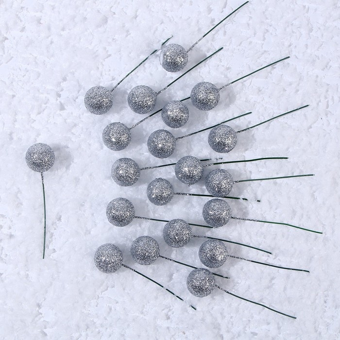 Фигурка для поделок и декора на проволоке «Шар», набор 20 шт., размер 1 шт. — 2 × 7 см, цвет серебро