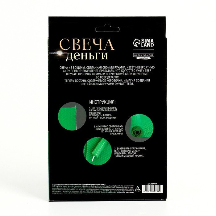Набор для создания магических свечей из вощины «Свеча привлечения денег» - это необычный инструмент, который поможет вам привлечь процветание и финансовое благополучие в вашу жизнь.