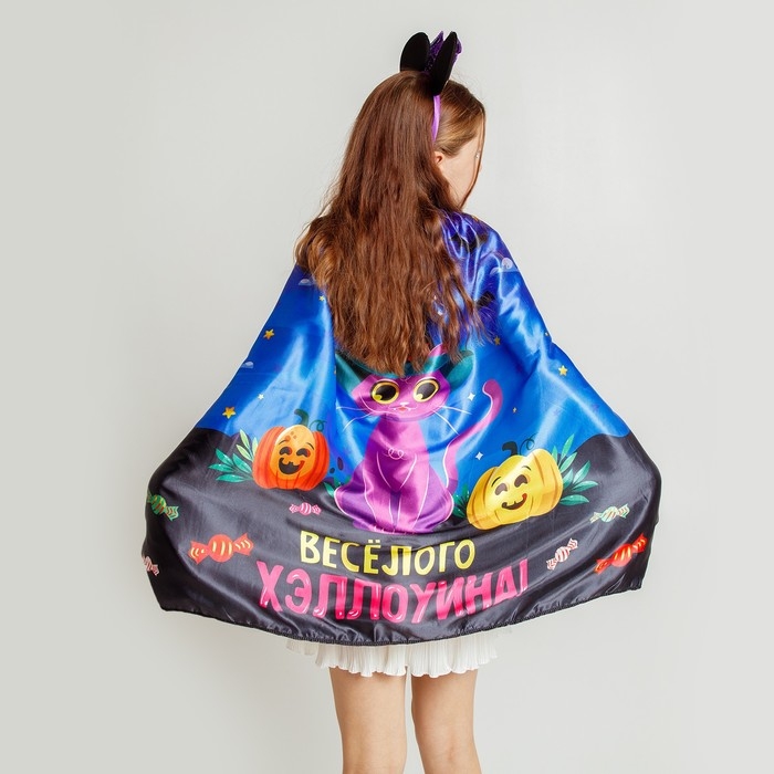 С карнавальным плащом «Весёлого Хэллоуина» вы станете настоящей звездой на тематической вечеринке и поразите всех гостей! Он эффектно дополнит ваш костюм. Создавайте яркие эмоции и воспоминания на целый год вперёд!