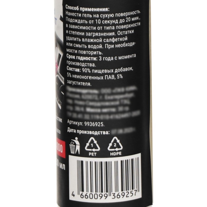 Внимание! Не использовать очиститель на лакированных поверхностях и инженерных пластиках. Средство их растворяет. Перед применением средство необходимо протестировать на незаметном участке.
