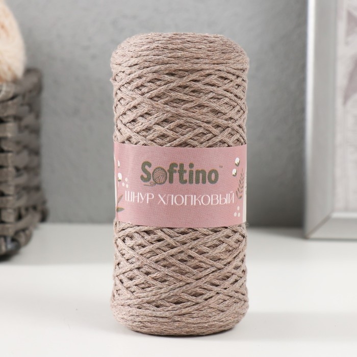 Шнур для вязания без сердечника 70% хлопок, 30% полиэстер 1мм 200м/60±10гр (04-темно-бежев)