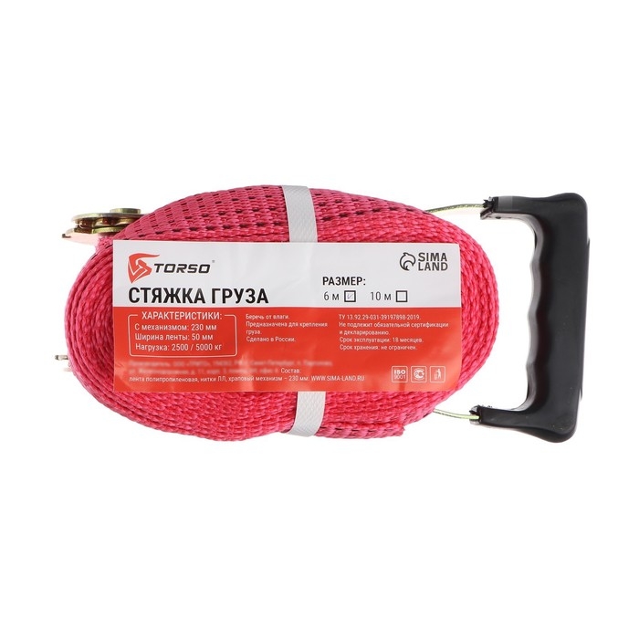 Стяжка груза TORSO с механизмом 230 мм, ширина ленты 50 мм, нагрузка 2,5/5 т, длина 6 м