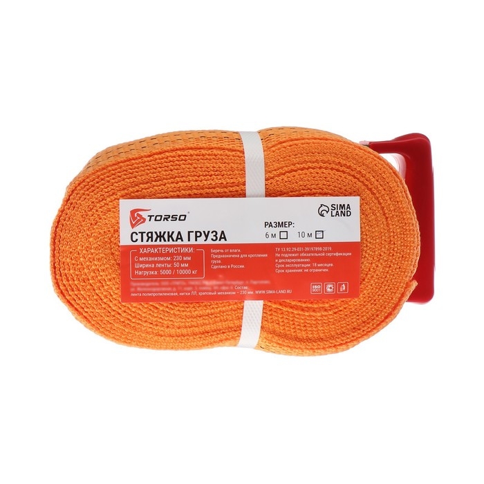 Стяжка груза TORSO с механизмом 230 мм, ширина ленты 50 мм, нагрузка 5/10 т, длина 10 м
