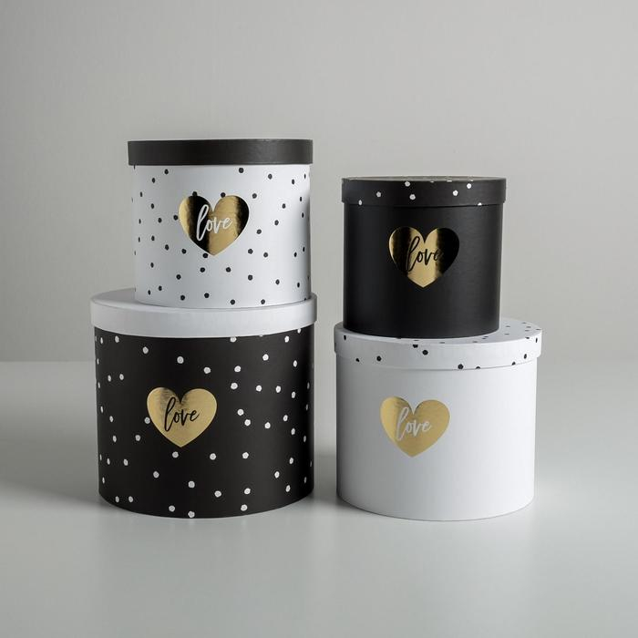 Набор шляпных коробок для цветов 4 в 1, упаковка подарочная, «Чёрно-белый», 14 х 13 см - 20 х 17,5 см