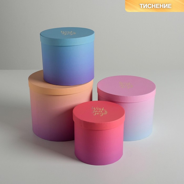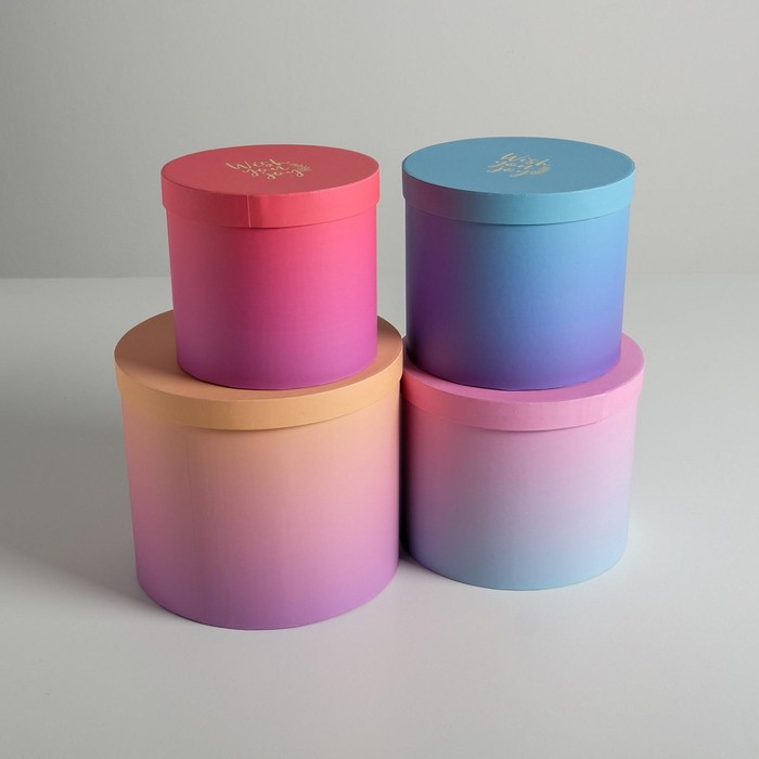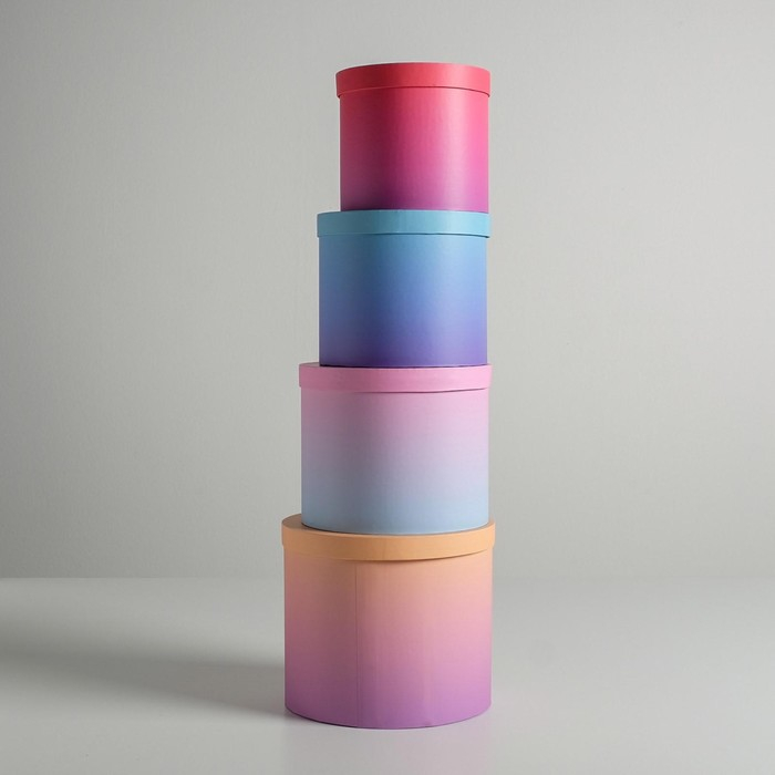 Набор шляпных коробок для цветов 4 в 1, упаковка подарочная, «Градиент», 14 х 13 см - 20 х 17,5 см