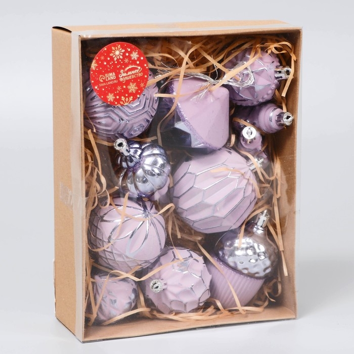 Ёлочные игрушки, пластик, набор 11 шт «Киссин» сиреневый