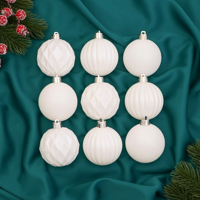 Ёлочные игрушки, шары новогодние , пластик, набор d-6 см, 9 шт "Перл" грани, белый