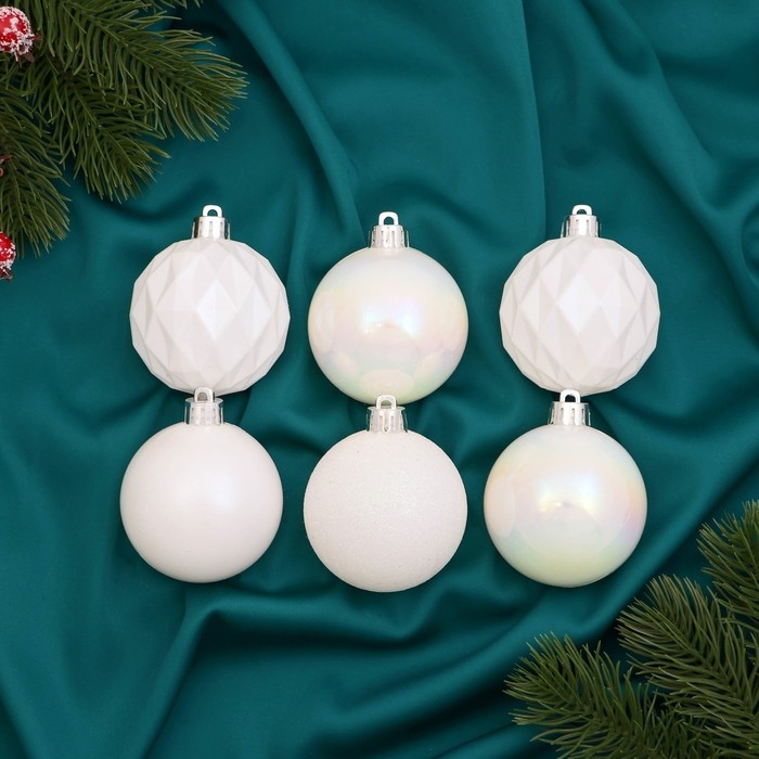 Ёлочные игрушки, шары новогодние , пластик, набор 16 шт "Изабель" сетка, белый