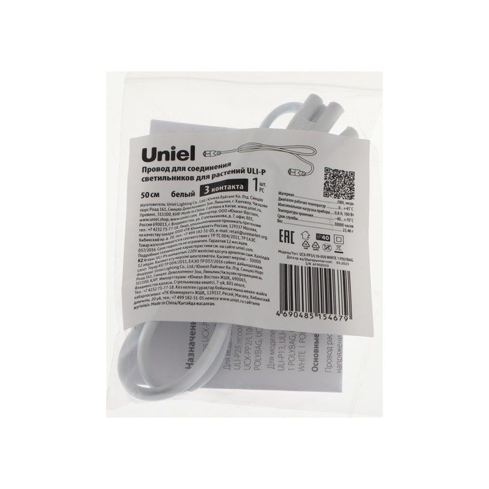 Провод для соединения светильников для растений ULI-P Uniel, 50 см, 3 контакта, белый