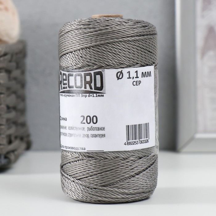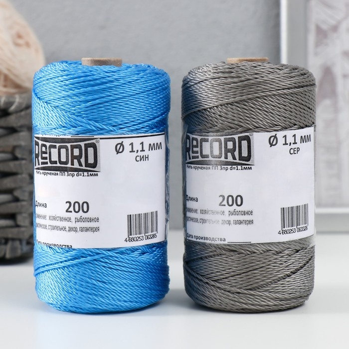 Нить кручёная 3-х прядная полипропиленовая, d=1,1 мм 200 м (набор 2 шт. син,сер)