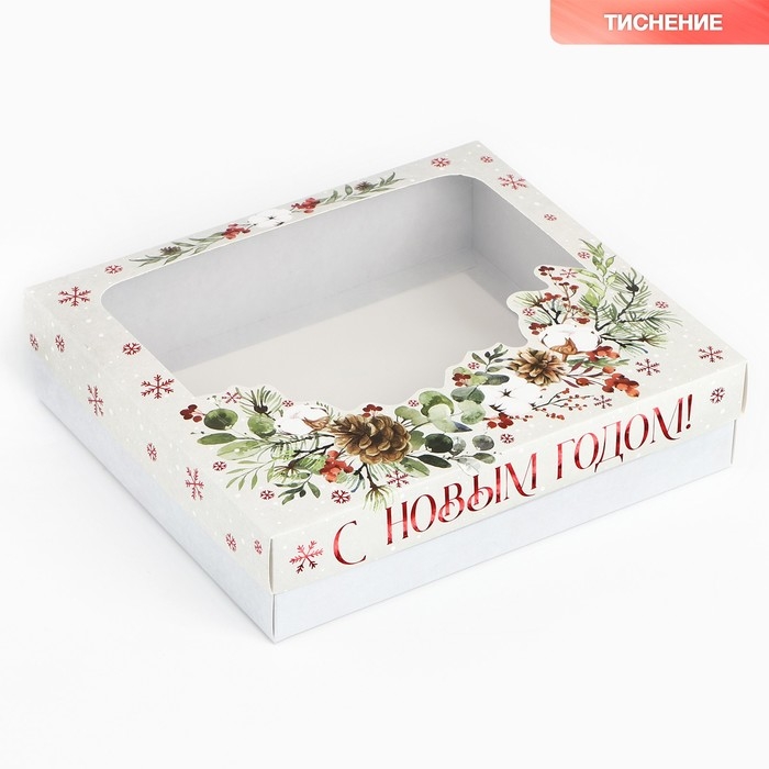 Коробка подарочная новогодняя складная «С новым годом», венок, 23.5 х 20.5 х 5.5 см