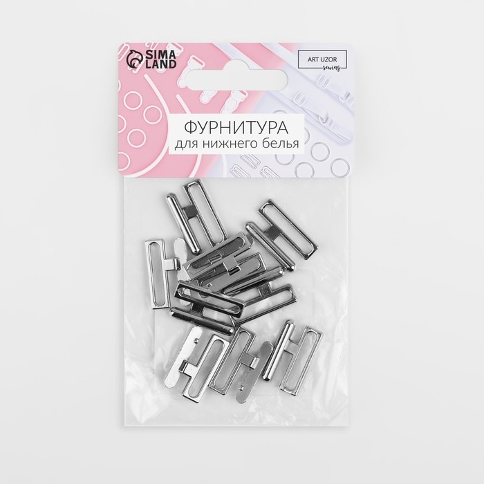 Застёжка для купальника, металлическая, 20 мм, 5 шт, цвет серебряный
