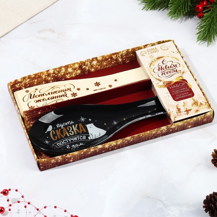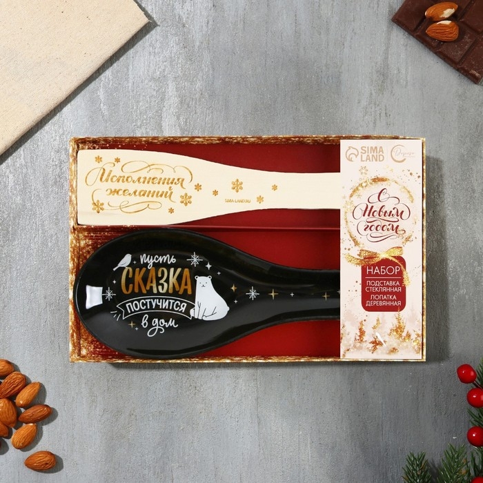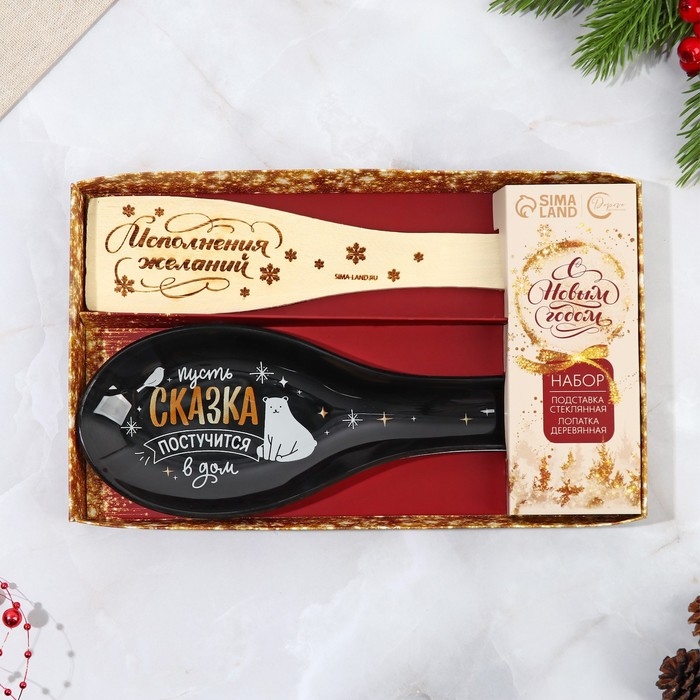 Подарочный набор новогодний «Счастье постучится в дом»: подставка под ложку, лопатка