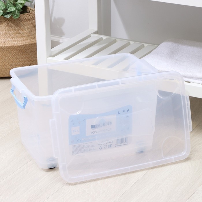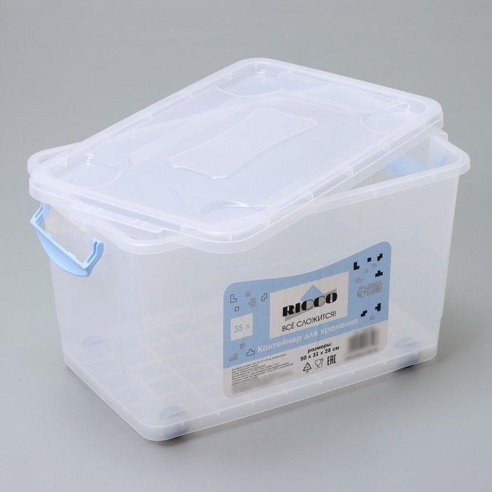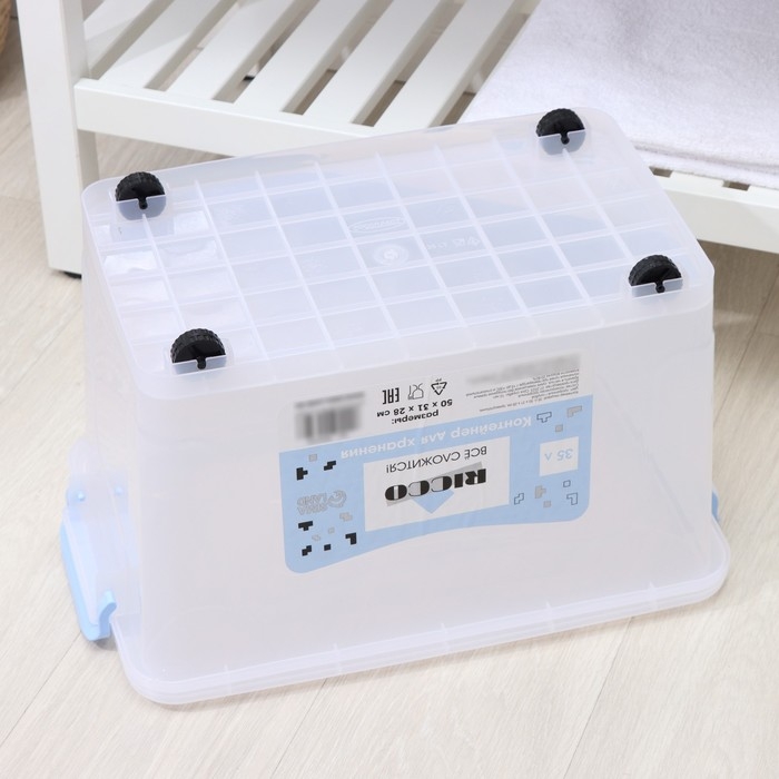 Контейнер для хранения с крышкой RICCO, 35 л, 50×31×28 см, на колёсах, прозрачный
