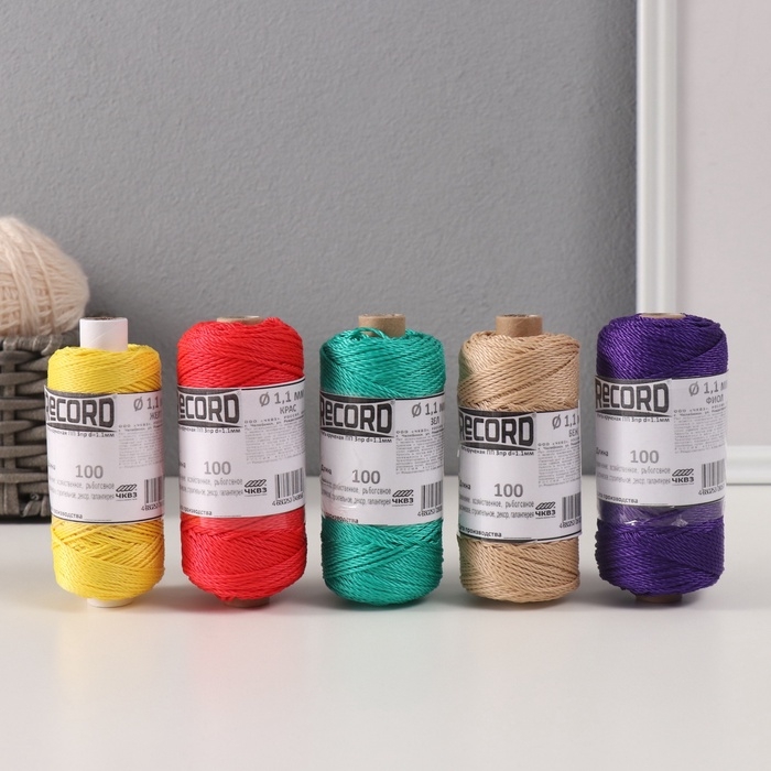 Нить крученая ПП 3пр d=1.1мм (100, беж, желт, зел, крас, фиол, Ц4"набор 5 шт)
