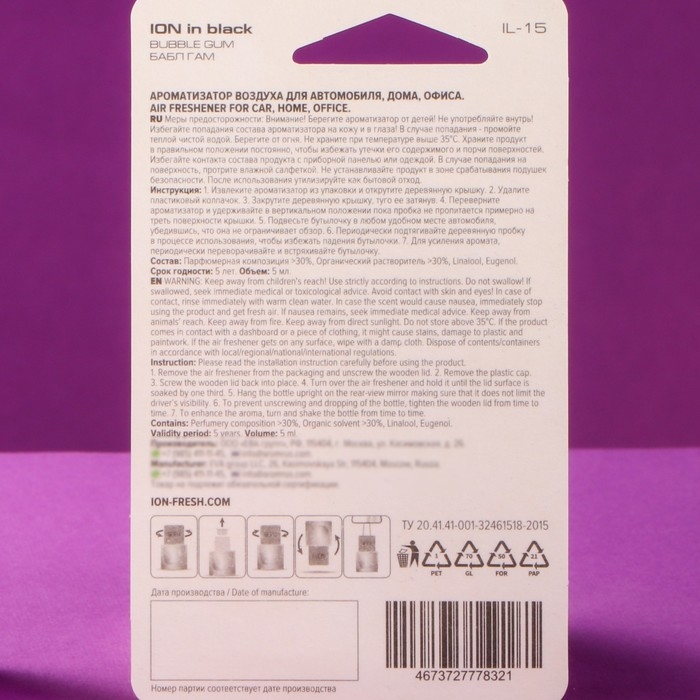 Ароматизатор подвесной бутылочка ION Бабл Гам, 5 мл, IL-15