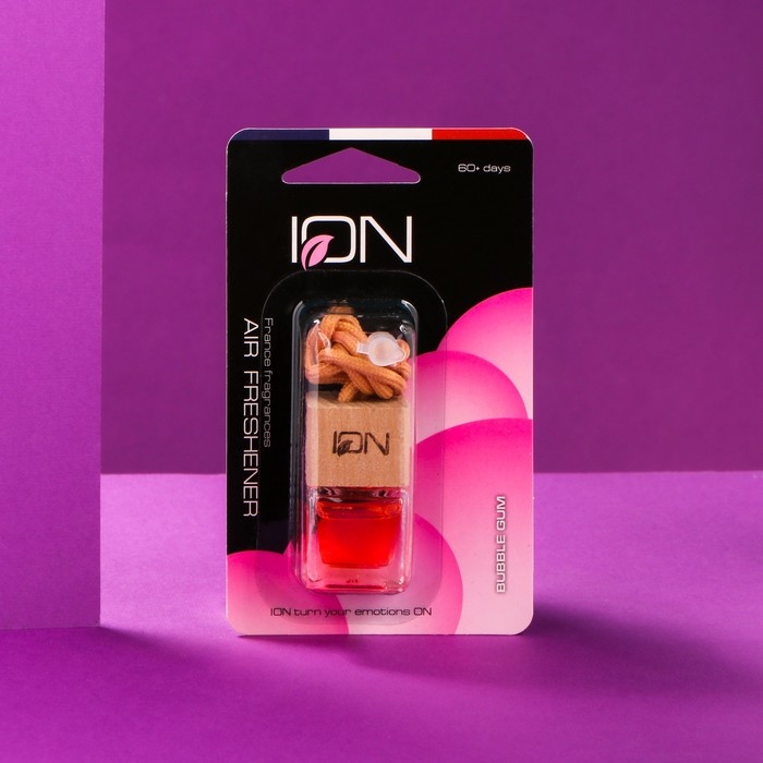 Ароматизатор подвесной бутылочка ION “Бабл Гам”, 5 мл - это компактный и удобный автомобильный аксессуар, предназначенный для создания приятной атмосферы в салоне автомобиля. Представляет собой стеклянную бутылочку с пробкой, внутри которой находится пахучая жидкость.