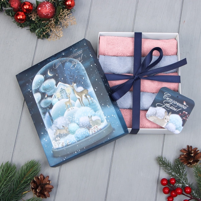 Набор махровых полотенец Этель "Волшебного года" 30х30 см -5шт, 100% хл, 340гр/м2
