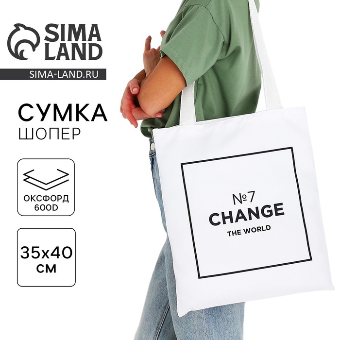 Шопер «Измени мир» 35х0.5х40 см, отдел без молнии, без подклада, белый