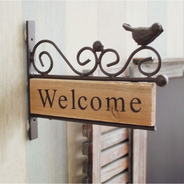 Сувенир на дверь чугун "Добро пожаловать. Птица и узоры" 1,5х18,5х15 см