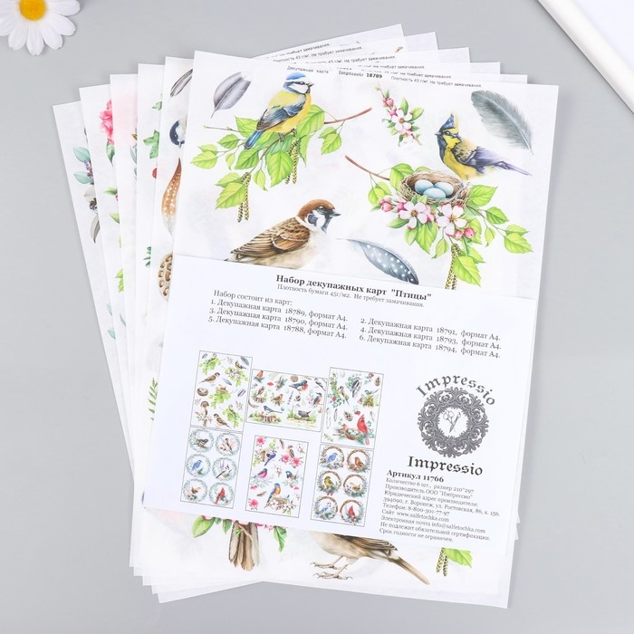 Набор декупажных карт 6 шт «Птицы»