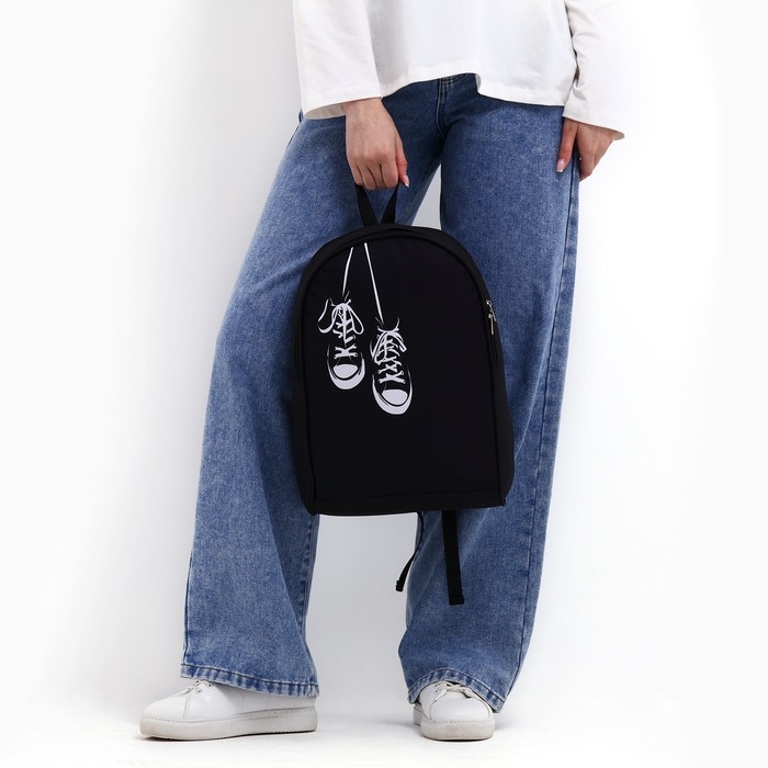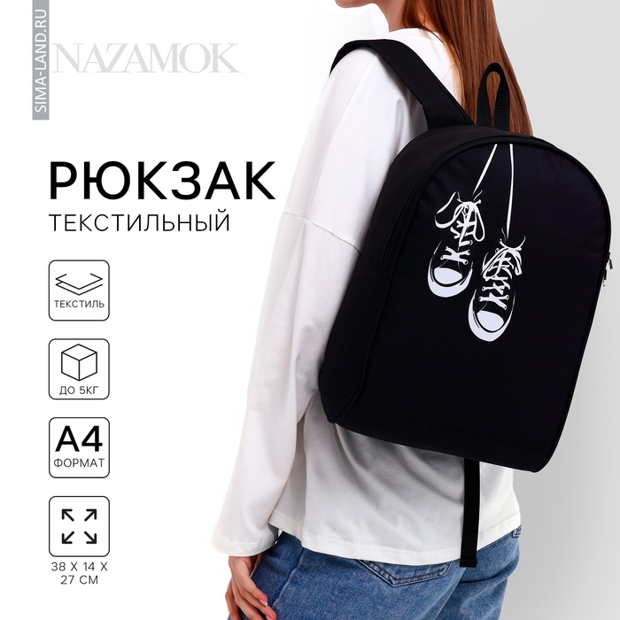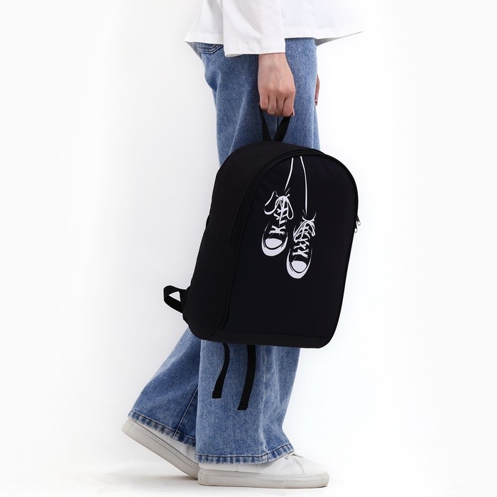 Рюкзак школьный текстильный «Кеды», 38х14х27 см, цвет чёрный