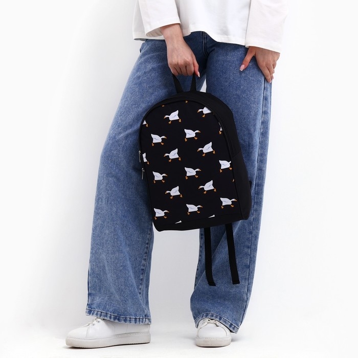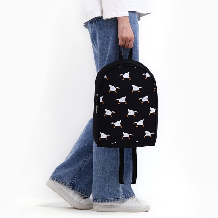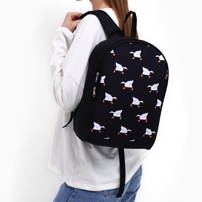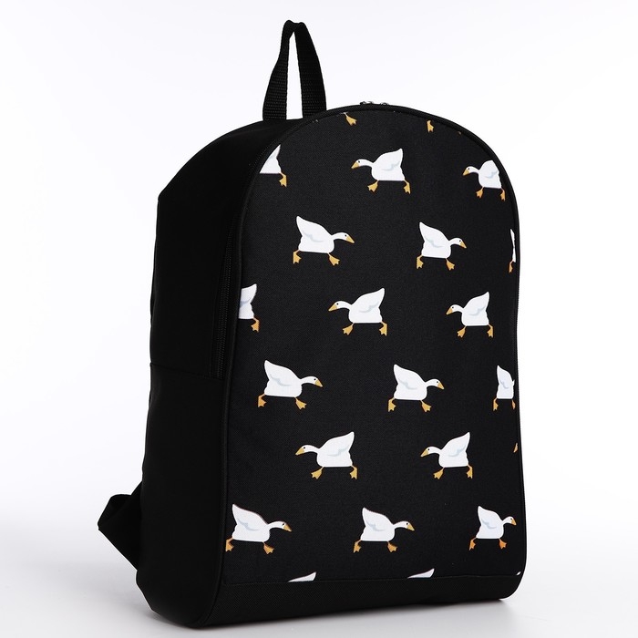 Рюкзак школьный текстильный «Гуси», 38х14х27 см, цвет чёрный