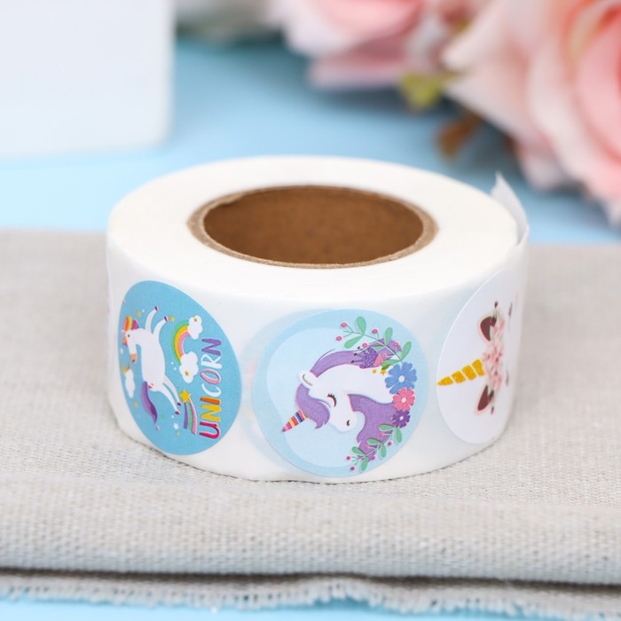 Наклейки в рулоне "Единорожки",500 шт,2,5 х 2,5 см