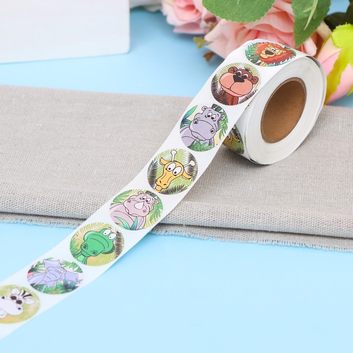 Наклейки в рулоне "Animals",500 шт,2,5 х 2,5 см