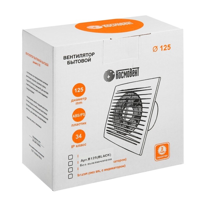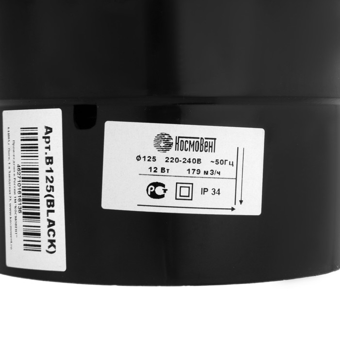 Вентилятор вытяжной "КосмоВент" В125, d=125 мм, 12 Вт, 40 дБ, 188 м³/ч, без выключ, черный