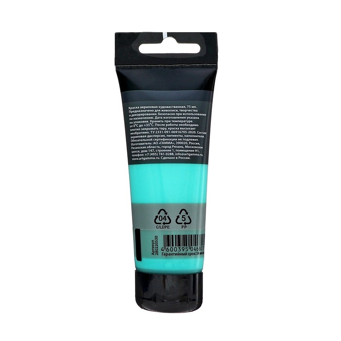 Краска акриловая художественная туба 75 мл, Гамма "Студия" №530 мятная